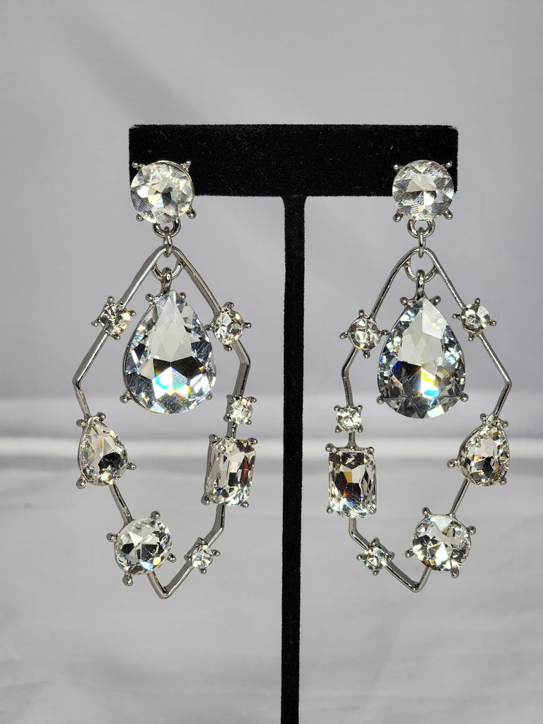 SILVER DANGLE EARRINGS WITH LARGE STONES.