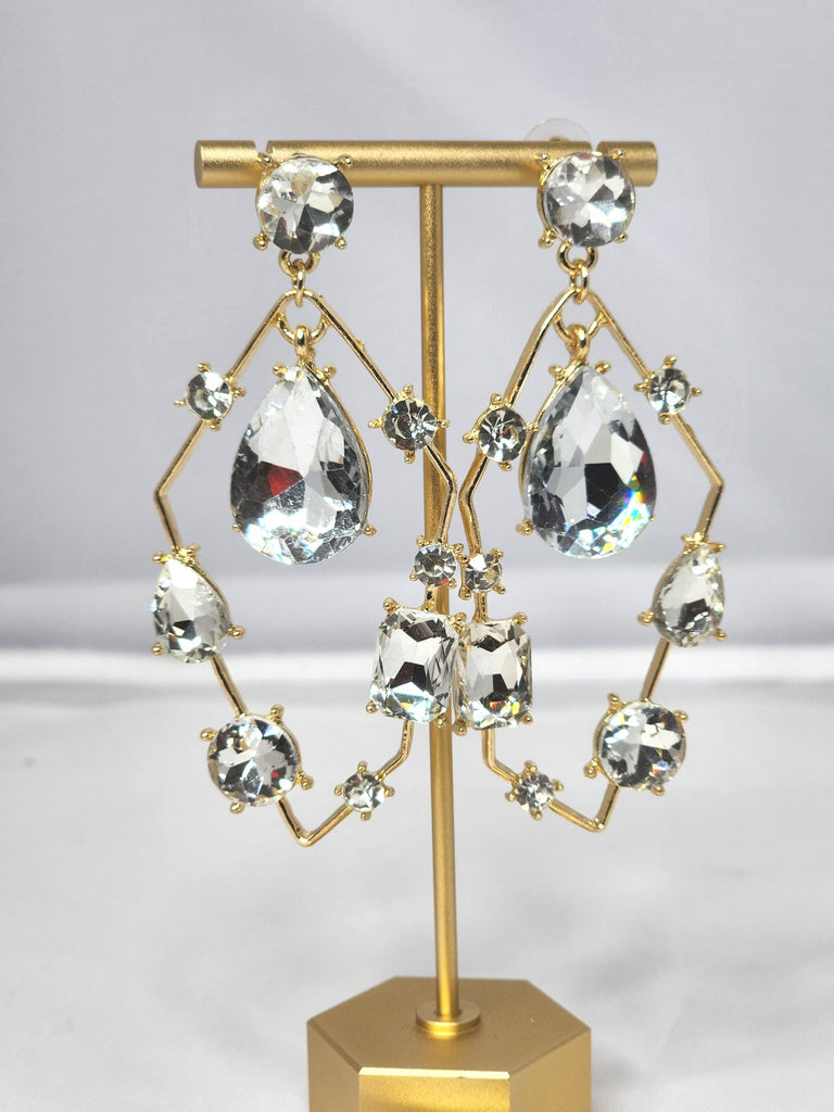 GOLD DANGLE EARRINGS WITH LARGE STONES.