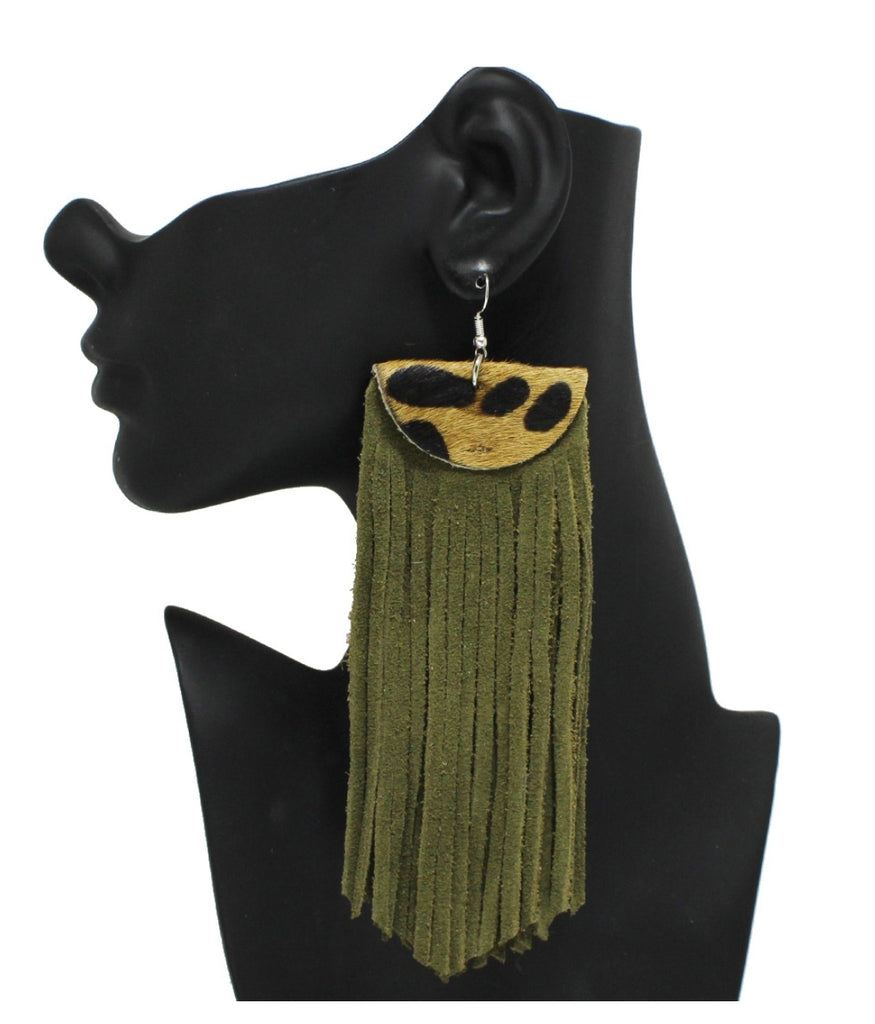 LEATHER-SUEDE OVERSIZED TASSEL EARRINGS