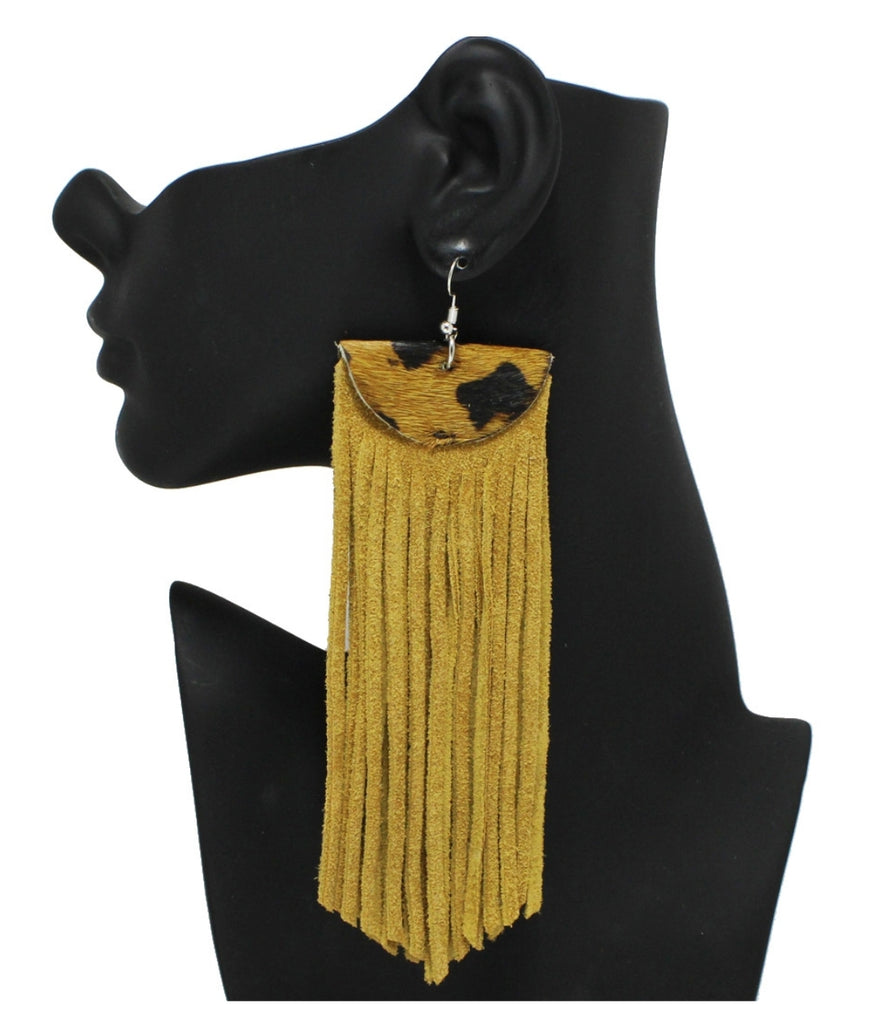 LEATHER-SUEDE OVERSIZED TASSEL EARRINGS