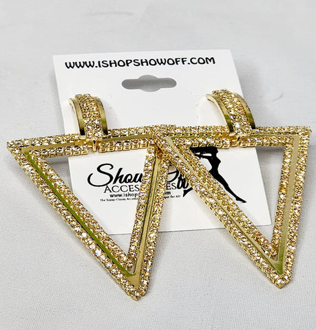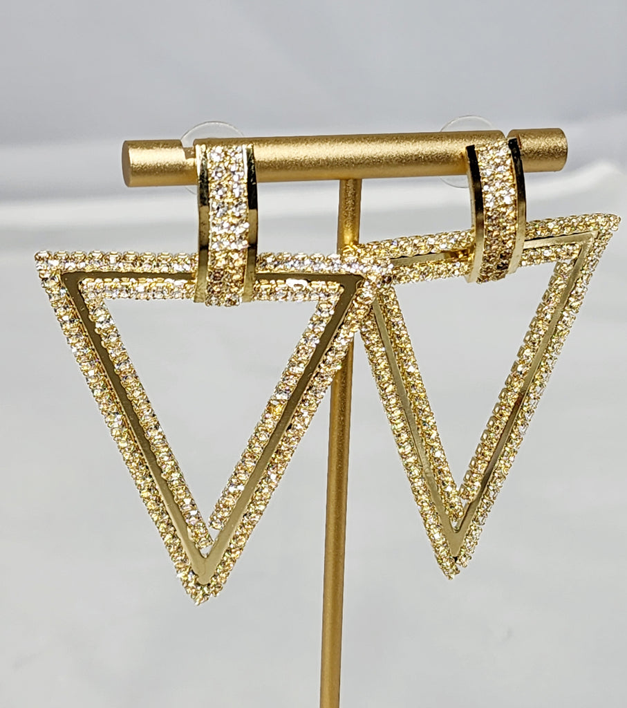 GOLD DANGLE EARRINGS WITH CLEAR RHINESTONES